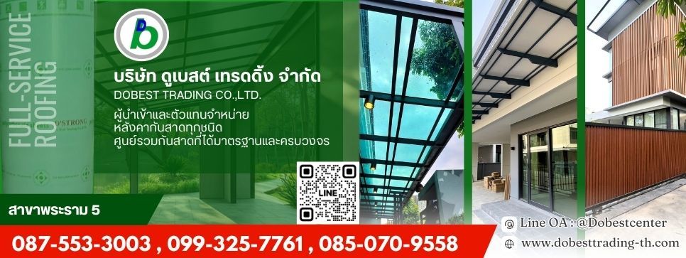 จำหน่ายวัสดุหลังคา กันสาดทุกชนิด บริษัทฯ ดำเนินธุรกิจด้านวัสดุแผ่นหลังคา กันสาด เป็นผู้จำหน่ายผลิตภัณฑ์นำเข้า แผ่นโพลี่คาร์บอเนต ยี่ห้อ ดี สตรอง (D’Strong) DB อลูมิเนียมลายไม้ , DB WAVE โพลี่คาร์บอเนต แบบลอน , แผ่น APVC - UPVC, อลูมิเนียมคอมโพสิต และเป็นตัวแทนจำหน่าย ดีไลท์ , โปรไลท์ , ไวนิล พลาสวู้ด และไวนิลท้องเรียบเนื้อแข็ง , ซิลิโคนยาแนวกันซึมและอุปกรณ์การติดตั้งหลังคา - กันสาด