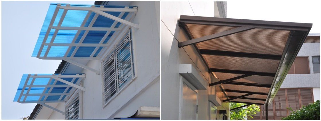 ในแวดวงธุรกิจก่อสร้างบ้าน ต่างก็มีนำไปใช้กันทั้งภายในและภายนอกบ้าน เช่นแผ่นผนังกั้นห้อง หรือราวบันไดกระจก ส่วนภายนอกบ้าน หลายคนนิยมนำแผ่นโพลีคาร์บอเนตโปร่งแสงมาใช้เป็นแผ่นมุงหลังคา ซึ่งโดยส่วนใหญ่จะนำมาใช้เป็นกันสาด มุงหลังคาในส่วนต่อเติม ครัวหลังบ้าน ส่วนซักล้าง-ตากผ้า หรือโรงจอดรถจะเป็นตัวเลือกที่ดีกว่า เพราะด้วยตัววัสดุเป็นโปร่งใส แสงสามารถลอดผ่านเข้ามาได้ จึงเหมาะอย่างยิ่งในการทำครัวหลังบ้านพื้นที่แคบ จะช่วยให้บ้านไม่รู้สึกอึดอัด รวมทั้งส่วนซักล้าง ตากผ้า ช่วยลดปัญหาผ้าแห้งไม่แห้งในช่วงฝนตกได้อีกทาง