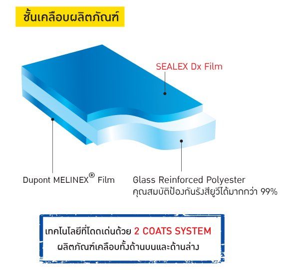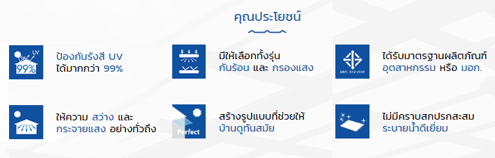 • สะท้อนความร้อนได้ดีที่สุดในกลุ่มวัสดุหลังคาโปร่งแสง