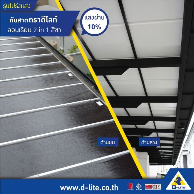 ตัวอย่างติดตั้งหลังคากันสาดดีไลท์ ลอนเรียบ 2 in 1