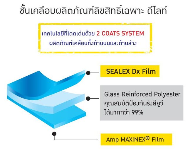 มาพร้อมคุณสมบัติจัดเต็มเคลือบฟิล์ม 2 ชั้น คุณสมบัติช่วยกันความร้อน และสะท้อนรังสียูวี ได้มาตรฐานออสเตรเลียรายเดียวในประเทศไทย รับประกันยาวนาน 15 ปี
